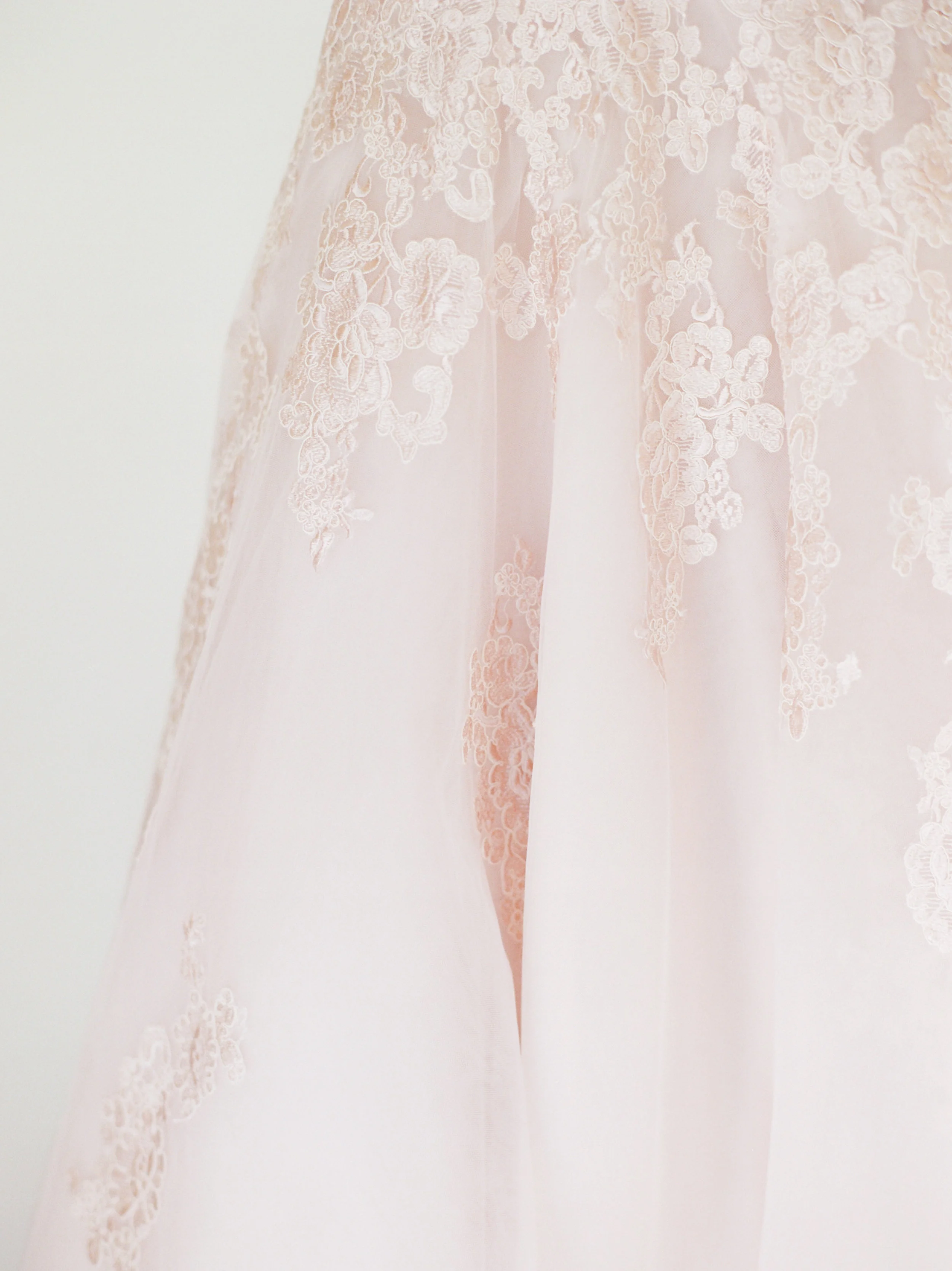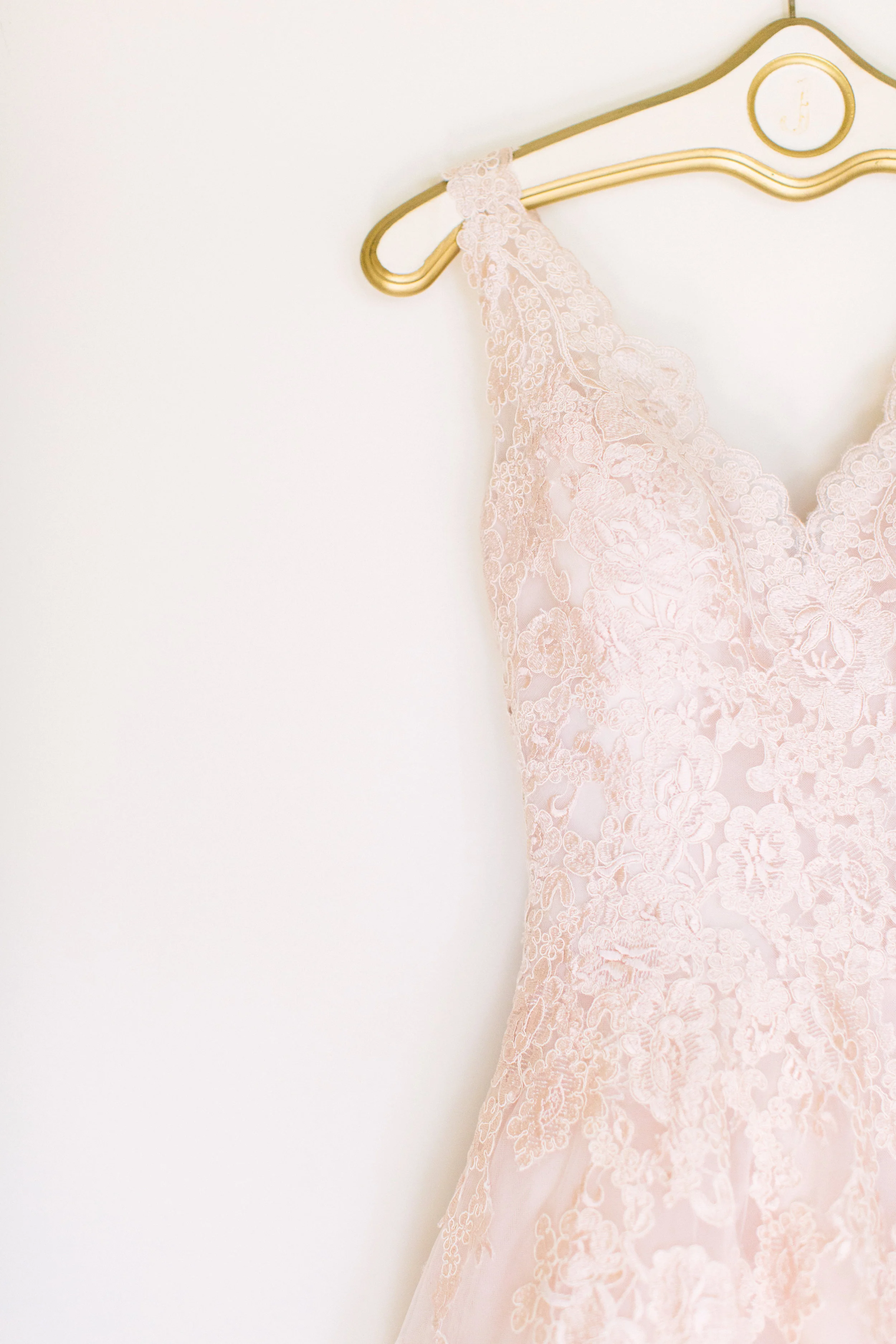 We saw a trend in colored dresses start in the early 2000's, but we must say, we are so excited that it has stuck around. Our bride recently wore the BHLDN McKinley Gown and it was absolutely breathtaking. It is a full silhouette and soft blush hue. She wore it for a Winter wedding and added a darker mauve stole as the temp started to drop in the evening.