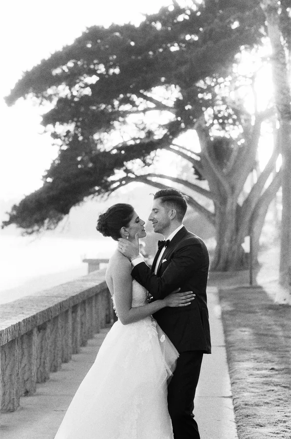 Photos taken right before sunset always seem to turn out stunning! Golden hour makes lighting perfection happen. That time of day brightens up black and white photos as well. Planning some time to get away from your reception to take these photos is totally worth it! You will treasure these photos forever, they capture your first sunset as a married couple.